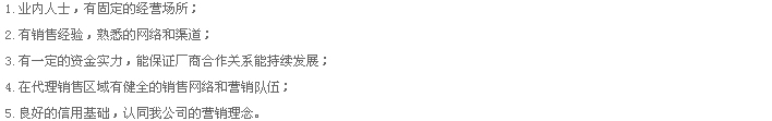 3.在約定的條件下,為您提供優(yōu)質(zhì)的售后服務(wù).保證在代理區(qū)域內(nèi)品牌經(jīng)營(yíng)權(quán);
